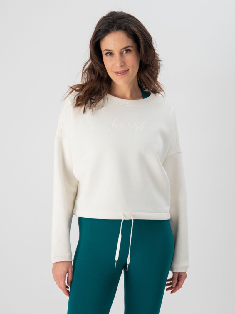 Felpa girocollo corta in colore Vanilla con ricamo tono su tono, dal carattere luminoso ed essenziale