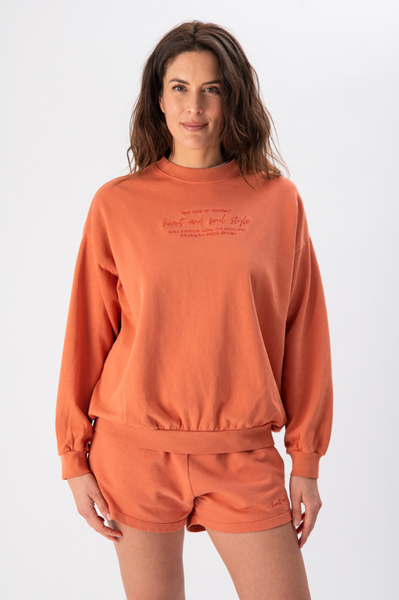 Realizzata in cotone biologico, questa felpa unisce comfort naturale e stile contemporaneo. Il fit oversize con spalle scese e le maniche a sbuffo creano una linea morbida e distintiva, facile da indossare con leggings o denim per un look casual e rilassato.
